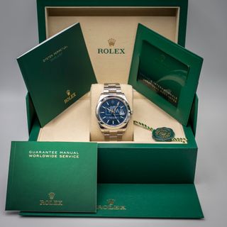 Modelo: Date Referencia: 15200 Año: 2000-2001 Dial: Azul Material: Acero Movimiento: Automatico Diametro: 34MM Documentacion: NO Caja: SI Estado: Buen estado Reloj Rolex Oyster Perpetual Date con esfera azul. - Caja y brazalete de acero inoxidable. - Ventana de fecha. - Bisel liso.