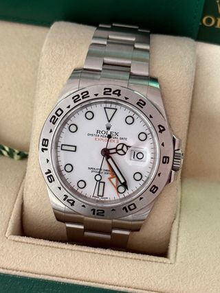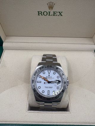 Reloj Rolex Explorer II Polar con esfera blanca. Un clásico de la aventura y la exploración. full set! como Nuevo Nacional. 2020 - Bisel GMT de 24 horas. - Ventana de fecha. - Escucho cambios por otros modelos Rolex vintage y modernos