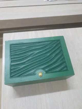 Se vende caja de Rolex en color verde. Ideal para guardar tu reloj. - Interior forrado en tela beige. - Incluye documentación.