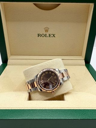 Marca: Rolex. Modelo: Datejust. Referencia: 278271. Año: 2025 . Movimiento: Automatico. Material: Acero/Oro rosa. Diámetro: 31MM. Cristal: Zafiro. Brazalete: Acero/Oro rosa. Esfera: Chocolate con Diamantes. Bisel: Oro rosa. Documentación: Si. Caja: Si. Estado del reloj: Nuevo. Tenemos tienda fisica en Marbella.