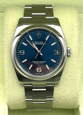Reloj Rolex Oyster Perpetual con caja y brazalete de acero y esfera azul. modelo 11600 Caja Y Papeles Diciembre 2016 re8182
