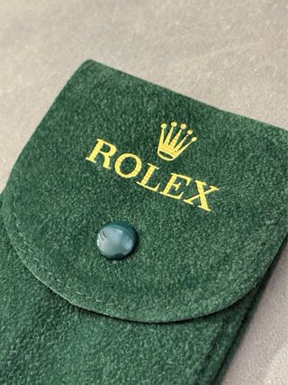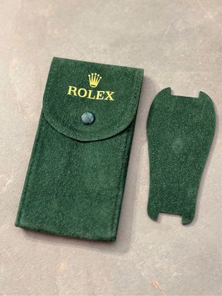 Funda de terciopelo en color verde para reloj Rolex. Incluye un cierre de botón a presión. - Material: Terciopelo. - Color: Verde. - Marca: Rolex.