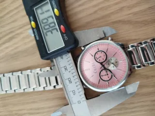 Elegante reloj de pulsera con esfera rosa y detalles plateados.Lo envío con su pila - Correa de metal plateado. - Diseño moderno con tres subesferas. - Marca: Cuchi. No es un Rolex pero funciona