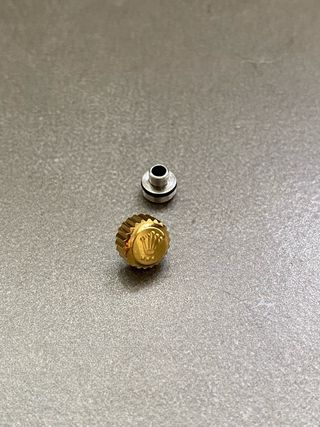 Recambio original de corona para reloj Rolex. Acero inoxidable color dorado. 7mm. Resistente al agua. Nuevo.
