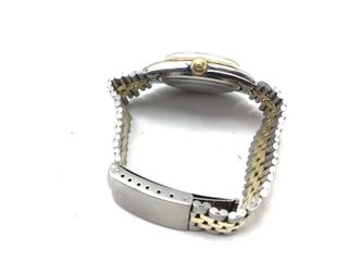 Elegante reloj Rolex Oyster Perpetual Datejust con bisel de diamantes. - Esfera plateada. - Bisel adornado con diamantes. - Brazalete de acero inoxidable.