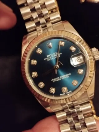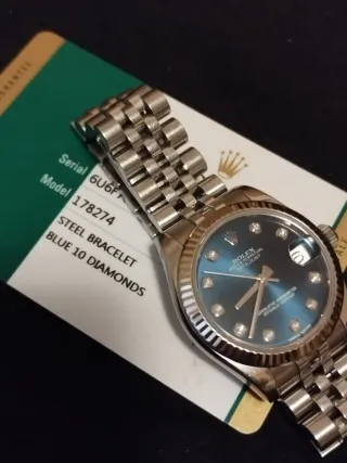 Reloj Rolex Datejust modelo 178274 con brazalete de acero y esfera azul con 10 diamantes de fabrica. Documentación original - Modelo: 178274 - Esfera: Azul con 10 diamantes