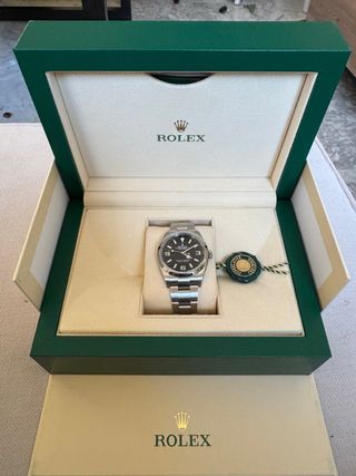Reloj Rolex Oyster Perpetual Explorer de 36mm. - Caja y brazalete de acero inoxidable. - Esfera negra con índices luminosos. - Bisel liso. - Cierre desplegable Oysterclasp. Completamente a estrenar