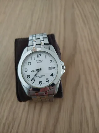 Reloj Casio con correa de metal y esfera blanca. - Resistente al agua 50M. - Movimiento de cuarzo. Con señales del uso normal Como rolex, tag heuer .