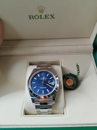 Reloj Rolex Datejust 41mm con esfera azul y bisel liso. Full set. Modelo 2025 a estrenar