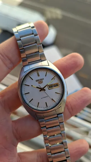Reloj Seiko 5 Sports con movimiento automático. - Funciona correctamente - Calendario Ingles / Italiano - Esfera blanca. - Ventana de día y fecha. - Brazalete de acero inoxidable. omega.rolex.tag.heuer.breitling.tudor.tissot.longines.certina.hamilton.seiko.orient.citizen.oris.mido.junghans.fortis.sinn.bulova.panerai.cartier.bulgari.chanel.dior.gucci.armani.dolce.gabbana.michael.kors.hublot.patek.phil