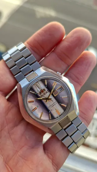 Reloj Orient Esfera con esfera de nácar y movimiento automático. - Funciona perfecto - En perfecto estado, reloj de colección - Esfera de nácar iridiscente. - Movimiento automático. - 21 joyas. - Indicador de día y fecha. omega.rolex.tag.heuer.breitling.tudor.tissot.longines.certina.hamilton.seiko.orient.citizen.oris.mido.junghans.fortis.sinn.bulova.panerai.cartier.bulgari.chanel.dior.gucci.armani.dolce.gabbana.michael.kors.hublot.patek.phil