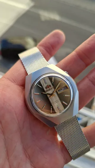 Reloj de pulsera Orient con esfera de nácar y movimiento automático. - En perfecto estado - Funciona todo correctamente excepto el cambio rapido el miércoles, pasando las 12 cambia sin problema. No afecta en nada a su funcionamiento - Esfera con acabado nacarado. - Indicador de día y fecha. - Correa de malla metálica. - Bisel plateado. omega.rolex.tag.heuer.breitling.tudor.tissot.longines.certina.hamilton.seiko.orient.citizen.oris.mido.junghans.fortis.sinn.bulova.panerai.cartier.bulgari.chanel.dior.gucci.armani.dolce.gabbana.michael.kors.hublot.patek.phil