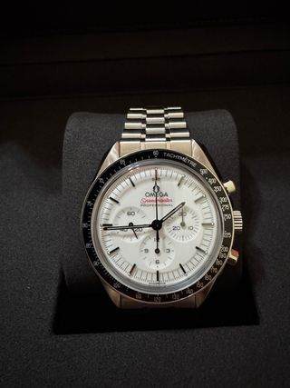 Reloj Omega Speedmaster Moonwatch con esfera blanca. El reloj tiene caja y papeles y es de diciembre de 2024. Está impoluto, como nuevo. Regalo correa adicional original Omega que cuesta 600 €. PVP Oficial del reloj 9.000 € Abstenerse mareantes y estafadores. Se hace contrato y el pago debe ser por transferencia. Se valoran cambios por algún Rolex o AP