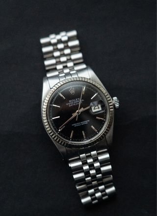 Reloj Rolex Datejust 1601 con esfera negra. - Bisel estriado. - Brazalete Jubilee. - Ventana de fecha.