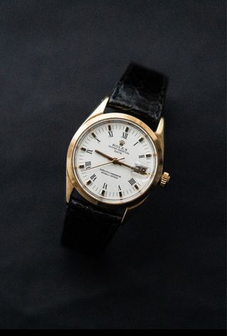 Reloj Rolex Oyster Perpetual 1550 con caja de acero y detalles en oro. La esfera es blanca y presenta números romanos. - Correa de piel negra. - Ventana de fecha. - Bisel estriado. - Diámetro 34mm - Calibre automático Somos profesionales todos nuestros artículos tienen 6 meses de garantía en su funcionamiento.