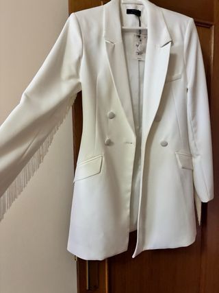 Chaqueta tipo vestido de Bershka en color blanco. Diseño elegante y moderno. - Se queda preciosa y elegante - Cierre con botón. - Bolsillos delanteros. iphone, samsung, tv, movil, coche, noto, xiaiomi, reloj, casa
