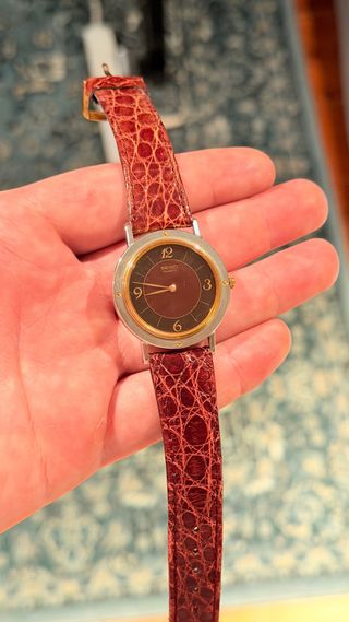 Vendo reloj Seiko Quartz 6430-6000, fabricado en 1982. Movimiento de cuarzo japonés Seiko 6430A, funcionando perfectamente, recién revisado y con pila nueva. Incluye su correa original. La esfera marrón/burdeos con detalles dorados combina muy bien con el diseño clásico de la caja de acero inoxidable. Estado: Muy buen estado para su edad; funciona sin problema.