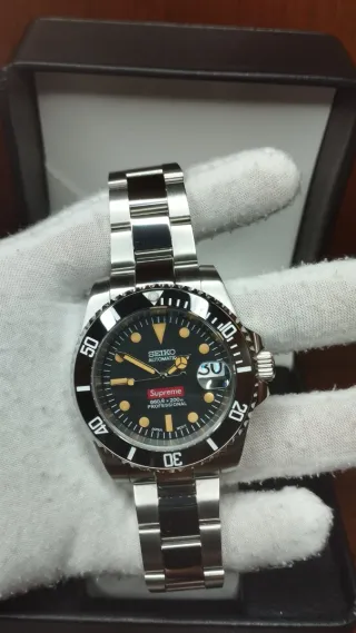 Seiko Mod Submariner Vintage Negro Plateado Rojo