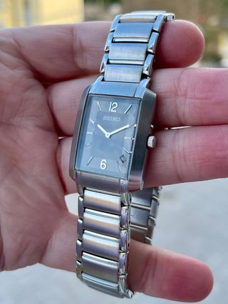Reloj JDM (lo que significa que fue diseñado específicamente para el mercado japonés). -Marca®️: Seiko 🇯🇵 -Referencia: V732-0S00 A0 -Nº de serie: 381353 -Estado✅: en un fabuloso estado de conservación (mínimas marcas de uso, debido a su edad) y funcionando perfectamente (pila recién cambiada). -Tamaño aprox.📏: 40mm sin contar la corona. -Color esfera🕢: azul marino con manecillas y marcadores en tono plateado. -Movimiento: Quartz. -Fechador: día del mes. -Año de fabricación aprox.📆: 2003. -Material correa🎗️: acero original de la marca, ⚠️ para contorno máximo de muñeca de 15,5cm ⚠️ (no tengo más eslabones).
