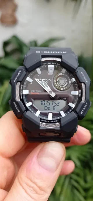 Reloj Casio G-Shock con diseño moderno y robusto. Combina una esfera analógica con una pantalla digital para mayor funcionalidad. - Correa de metal plateada. - Esfera negra. - Resistente y duradero. NO TIENE LAS FUNCIONES DE Bluetooth ni es solar. (De ahi su precio)