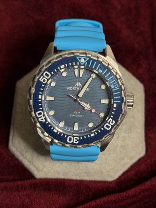 ¡Espectacular North Edge Triton en perfecto estado! 🌊 Reloj de buceo con movimiento SOLAR (se carga con luz, sin pilas). Caja de acero de 45mm, bisel giratorio y dial texturizado muy elegante. ✅ Funcionamiento 10/10. ✅ Resistencia al agua 300m (apto buceo). ✅ Correa de silicona azul flúor muy cómoda. ✅ Cristal sin marcas y lumen potente. Ideal para quien busca un reloj robusto, fiable y con estética profesional sin gastar de más. ¡Listo para reestrenar!