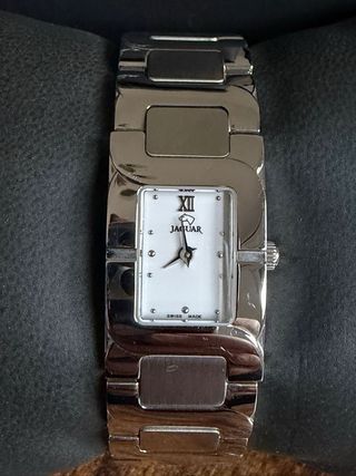 Elegante reloj de pulsera de la marca Jaguar, con un diseño clásico y sofisticado. - Caja y brazalete de acero inoxidable. - Esfera blanca con detalles plateados. - Movimiento suizo de precisión.