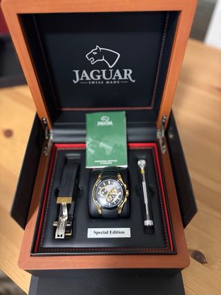 🔹 Marca: Jaguar 🔹 Modelo: J691-2 (Edición Especial) 🔹 Swiss Made: movimiento suizo de alta calidad 🔹 Estado: impecable, sin marcas ni rayaduras visibles 🔹 Funciones: cronógrafo 3 esferas, fecha, precisión suiza 🔹 Caja y correa: diseño elegante y deportivo 🔹 Incluye: caja original 🔹 La elección de un cristal de zafiro garantiza una visibilidad excepcional del reloj y le confiere una enorme resistencia a las rayadas