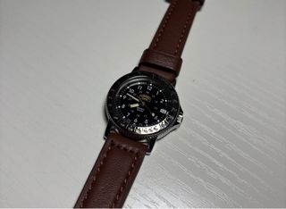 Funciona perfectamente. Movimiento de cuarzo Suizo con GMT. Caja de 44mm. Le falta el tornillo protector tija. Como se ve en fotos.