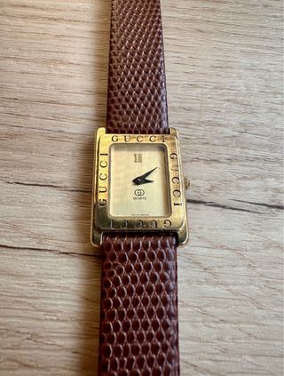 Auténtico reloj Gucci de fabricación suiza (Swiss Made). Una pieza de lujo absoluto con un diseño minimalista cuadrado que nunca pasa de moda. Características: Caja: Acero inoxidable de alta calidad. Cristal: Zafiro irrayable. Maquinaria: Movimiento de cuarzo suizo de máxima fiabilidad. Correa: Piel negra original Gucci (con marcas normales de uso). Resistencia: Water Resistant 3 ATM.