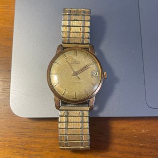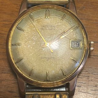 Reloj suizo de alta gama Angelus Datographe original de mediados del siglo XX. Marca de gran prestigio entre coleccionistas. Maquinaria: Automática suiza con sistema Incabloc y calendario. Caja: Oro laminado (Top Plaque L G.F.) con tapa trasera de acero inoxidable. Correa: Brazalete elástico Fixo-Flex original (Made in Germany). Estado: Presenta marcas de uso normales por su antigüedad que certifican su autenticidad. Pieza de colección muy buscada. Hago envíos o entrega en mano.