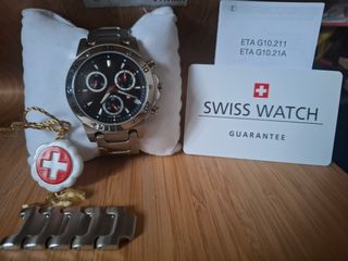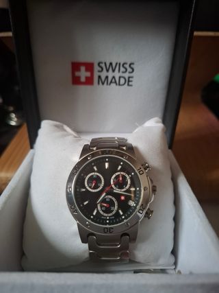 Elegante reloj suizo con cronógrafo. - Esfera negra de 43mm. - Acero inoxidable - Incluye garantía de Swiss Watch. -Pila recién cambiada. - Movimiento de cuarzo ETA G10 Prácticamente nuevo, lo he usado en dos o tres ocasiones. Lo vendo para buscar uno de 40mm. #Swiss Military #Seiko #Citizen #swacth #Timex