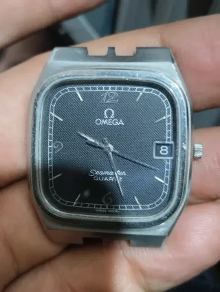Reloj Omega Seamaster Quartz con esfera negra Reloj no fonciona sevende para reparar - Diseño cuadrado. - Ventana de fecha. - Fabricado en Suiza.