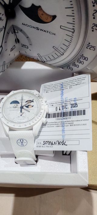 Reloj Omega x Swatch, edición especial MoonSwatch. ‼️El diseño es único para cada modelo, lo que garantiza que, al igual que los copos de nieve en la naturaleza, no hay dos relojes iguales.‼️ En mano el jueves 4 - Bioceramica - Color blanco. - Diseño inspirado en la luna. - Con factura
