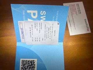 Reloj Blancpain X Swatch modelo Ocean of Storms completamente negro. La correa original no la he llegado a usar puesto que no me gustaba y le puse una negra. El reloj fue comprado el día 9/9/24 en la tienda Swatch del Aeropuerto de Zurich. El reloj es 100% Original y todavía esta en garantía. El ticket de compra está parcialmente borrado pero se intuye, a parte tengo la tarjeta que me dieron en la tienda oficial que está cuñada. Es un reloj muy cómodo y lijero!!! Vendo por no usar. Se encuentra como nuevo, ninguna marca ni raya. Más Info no dudéis en mandar mensaje.