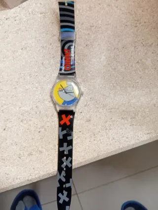 Reloj infantil de la marca Swatch, modelo Flik Flak. Ideal para los más pequeños. - Correa de tela a rayas. - Diseño divertido y colorido. Funciona perfectamente. Es del 2019. Faltaría pila y si quieres cambio de correa.