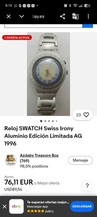 • De media, comprar Reloj Swatch Irony en Wallapop es un 44% más barato que comprar este tipo de producto nuevo