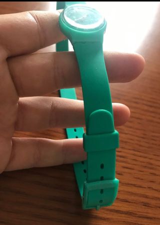 Reloj de la marca Swatch en tonos teal y blanco. - Diseño moderno y juvenil. - Correa cómoda y ajustable. - Presentado en su caja original.