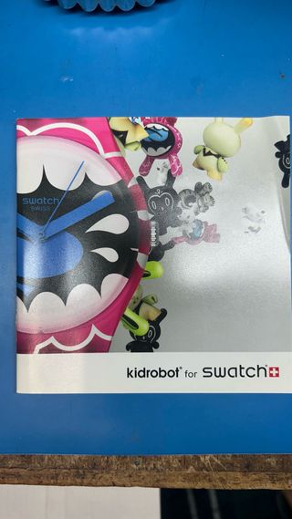 Conjunto de edición limitada de Swatch x Kidrobot. - Incluye reloj y figura. - Diseño de personaje. - Caja transparente.