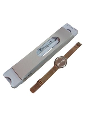 Elegante reloj de la marca Swatch con un acabado dorado. - swatch Dorado - Diseño moderno y llamativo. -pila nueva - Correa metálica. - Esfera con detalles. - Resistente al agua. -PRECIO NEGOCIABLE