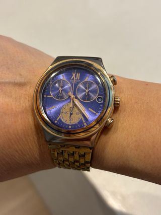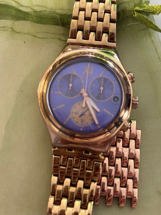 Reloj Swatch esfera grande azul y dorado