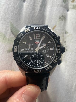 TAG Heuer Formula 1 Chronograph original – CAZ1011.BA0842 • Movimiento suizo de cuarzo con cronógrafo • Caja de acero inoxidable de 43 mm • Esfera gris con subesferas a las 3, 6 y 9 • Bisel fijo con escala taquimétrica • Ventana de fecha entre las 4 y 5 • Cristal de zafiro resistente a rayaduras • Brazalete de acero con cierre doble de seguridad • Resistencia al agua: 200 m (20 ATM) • Estado: impecable • Incluye caja de cuero, tarjeta de garantía y manuales 🤝 Entrega en mano en Madrid