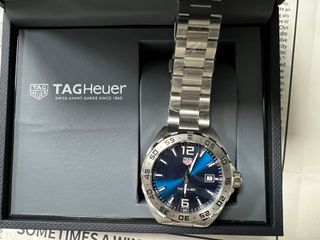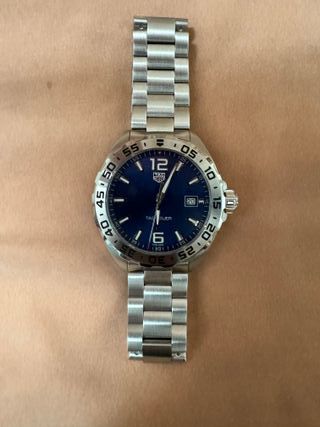 Elegante reloj TAG Heuer con esfera azul. Viene con toda la documentación y en pleno funcionamiento. Eso sí, la garantía se le pasó. Si te gusta, el precio lo podemos ajustar. - Caja y brazalete de acero inoxidable. - Bisel giratorio. - Cierre desplegable.