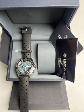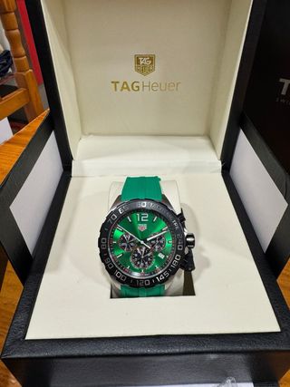 Reloj TAG Heuer Formula 1 con cronógrafo y correa verde. - Esfera verde. - Correa de caucho verde. - Bisel con taquímetro. Es un reloj que llama muchísimo la atención y queda espectacular en muñeca. Ideal tanto para diario como para alguien que quiera algo deportivo pero elegante a la vez. Lo vendo porque no le estoy dando uso y prefiero que lo disfrute alguien que lo aproveche. Precio algo negociable, pero no acepto cambios absurdos ni ofertas ridículas. Se puede ver sin compromiso.