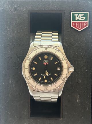 Vendo TAG Heuer 3000 Professional, versión todo acero, reloj de buceo suizo icónico de los años 90. Modelo muy equilibrado y usable, antecesor directo de los Aquaracer, cada vez más valorado por coleccionistas. Detalles: Movimiento cuarzo suizo TAG Heuer Caja de acero inoxidable Brazalete original TAG Heuer en acero Esfera y agujas originales Bisel giratorio funcional Cristal con marcas leves acordes a la edad Funcionando correctamente Reloj original, sin piezas aftermarket ni modificaciones. Estado general honesto, con desgaste normal para un reloj vintage (ver fotos).