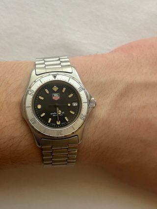 TAG Heuer Professional 1000 – Ref. 980.020B – Vintage Swiss Diver Vendo TAG Heuer Professional Serie 1000, referencia 980.020B, original suizo, años 90. Movimiento cuarzo suizo TAG Heuer Caja y brazalete acero y oro Esfera original con tritio (“T Swiss Made T”) Agujas, bisel, corona y brazalete originales Estado honesto para su edad, con desgaste normal (ver fotos) Funciona correctamente Reloj 100% auténtico, sin piezas aftermarket ni “franken”. Modelo clásico de buceo TAG Heuer, cada vez más buscado por coleccionistas. 📍 Sin caja ni papeles 💶 Precio: 950 € ❌ No cambios 🤝 Escucho ofertas razonables