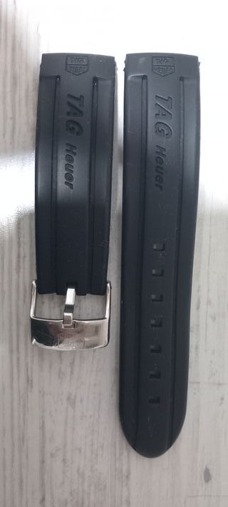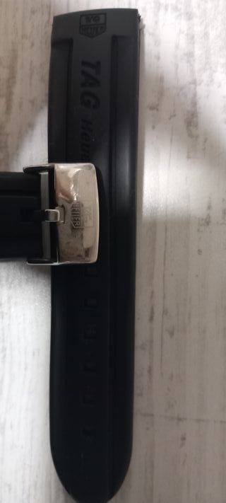 Correa de caucho para reloj TAG Heuer de 24mm. Se encuentra en excelente estado, prácticamente nueva. También cambio por correa 21mm Tag o artículo equivalente en precio. - Cierre de hebilla metálica. - Diseño en caucho negro.