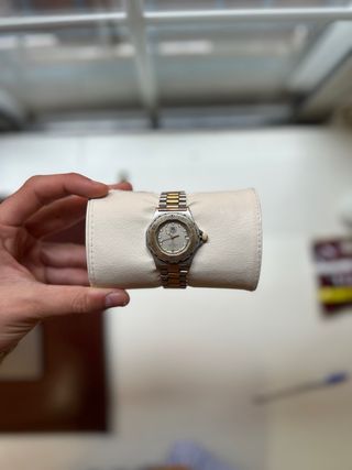 Reloj TAG Heuer Professional 3000 con detalles en oro y plata. 36mm - Bisel giratorio. - Correa de eslabones. - Esfera clara con marcadores. - Cristal de Zafiro Mantenimiento hecho, reloj listo para disfrutar.