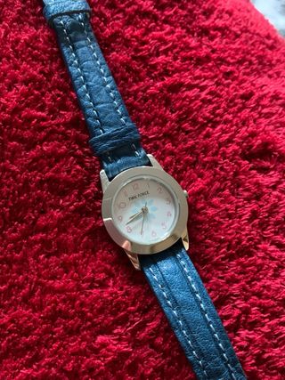 Reloj de niña marca Time Force. Con correa azul de piel Karabu. Esfera de 2,6 cm. Resistente al agua hasta 3 atm. En buen estado.