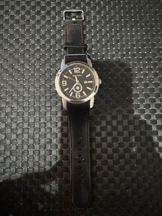 Reloj de pulsera con diseño moderno y detalles en plateado. - Esfera negra con marcadores horarios. - Correa de material resistente. Si tienes alguna duda, no dudes en dejar tu pregunta. Un saludo