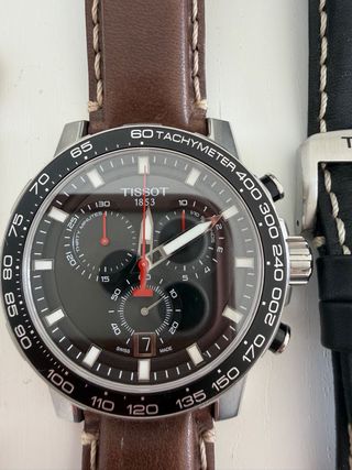 Reloj Tissot SUPERSPORT CHRONO con movimiento ETA G10.212. Material - caja de acero inoxidable 316l - cristal de zafiro resistente a rayones con revestimiento antirreflectante - color de la esfera negro - resistente al agua hasta una presión de 10 bar (100 m / 330 pies) - pila tipo renata 394 - Diámetro de la caja: 12.0 millimeters En excelentes condiciones. Entrego con correa adicional, original Tissot. Venta en mano en Barcelona.